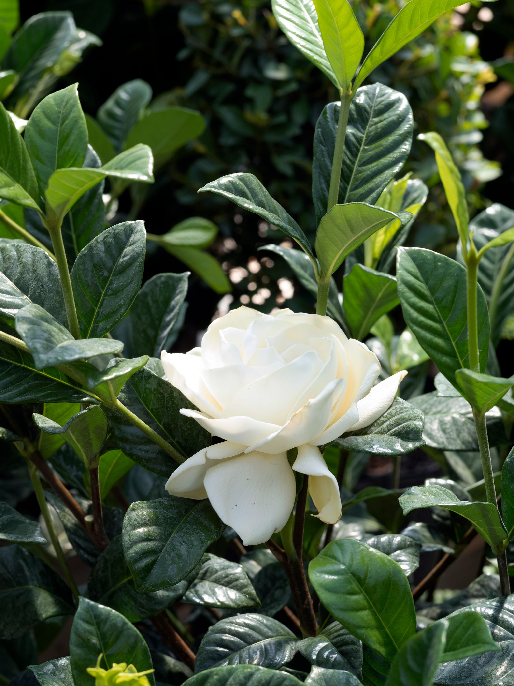 Glossy green foliage and large white double blooms add grace and luxury to any space.