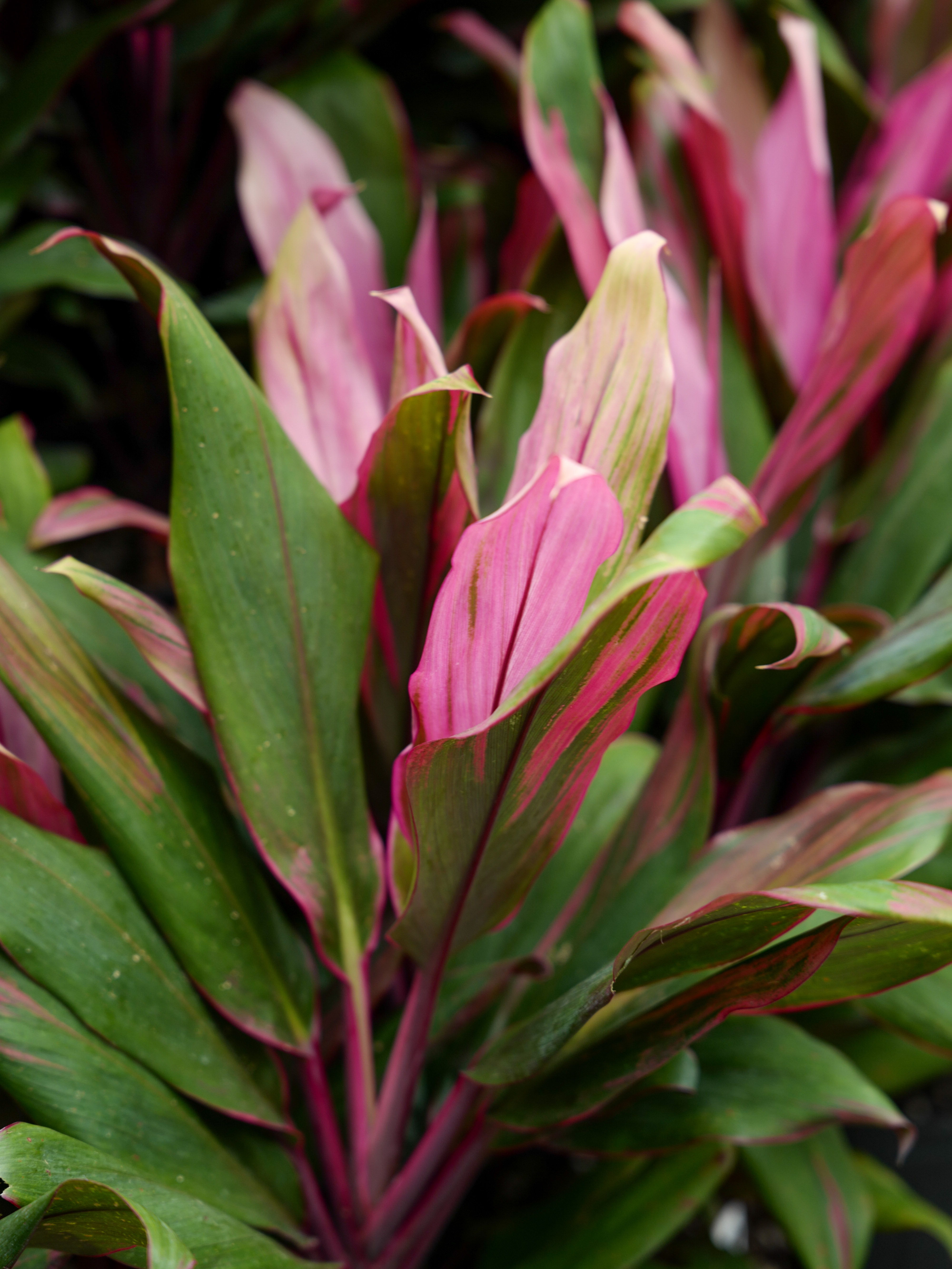 Specifically, Cordyline fruticosa loved for its wide leaves and stripy foliage ranging in color from pinks to lime greens to yellows and white.